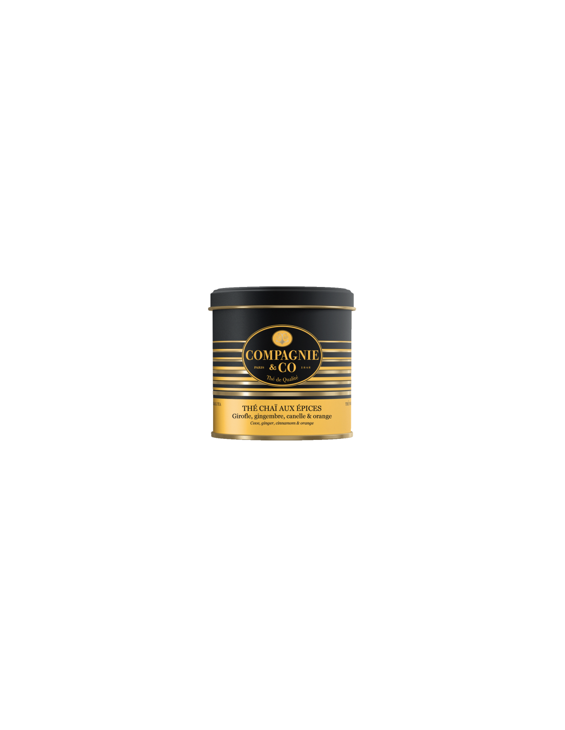 Mélange de thés de Chine noirs avec des clous de girofle entiers, des gousses de cardamome verte, des morceaux de gingembre, de cannelle et d’écorces d’orange.