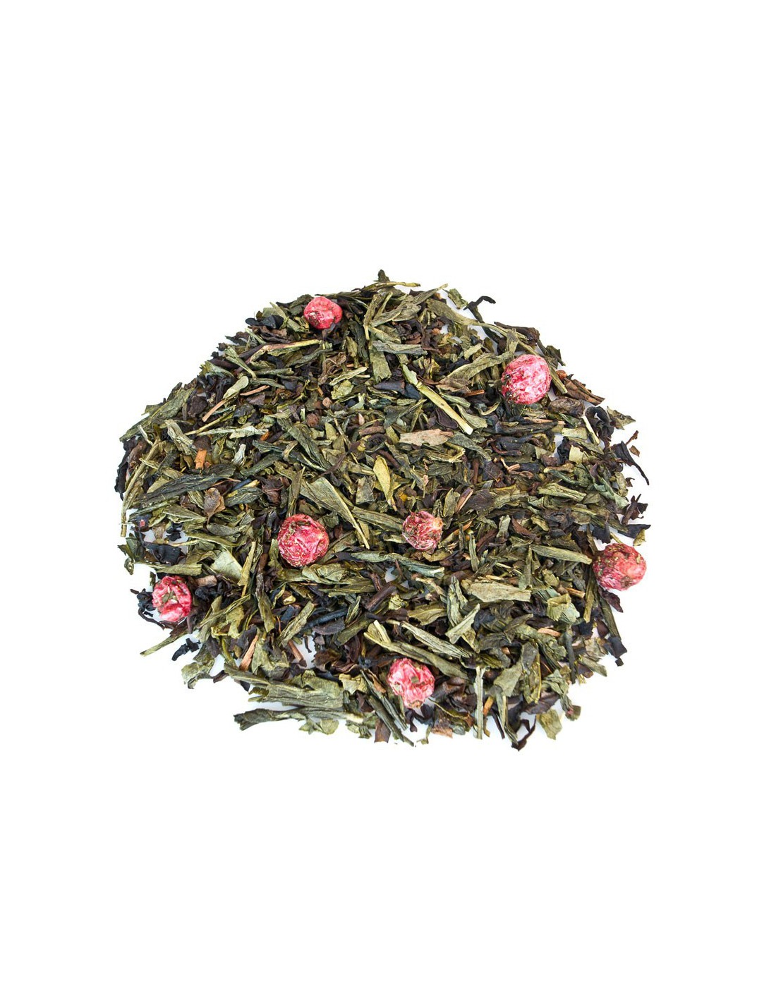 Mélange de thé vert Sencha et de thé semi-fermenté Oolong, aromatisé fruits rouges et vanille avec des groseilles entières.