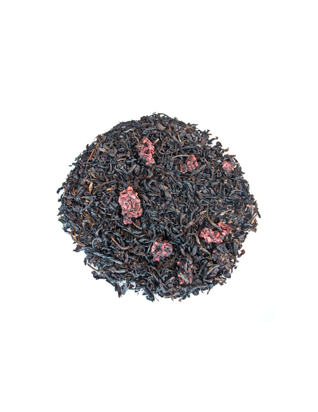 Mélange de thés de Chine noirs aromatisé fruits rouges et parsemé de morceaux de framboise.