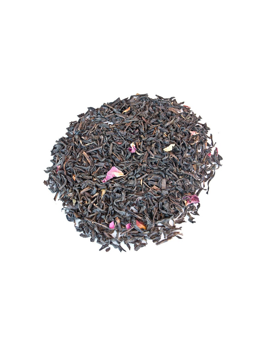 Thé noir de Chine aromatisé à la rose avec pétales de rose.